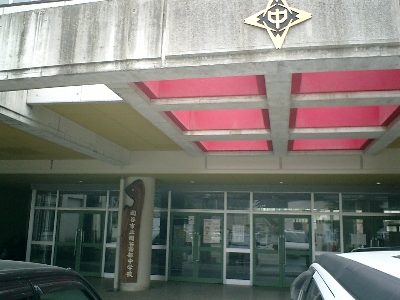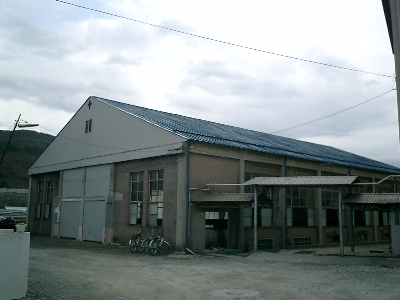 | 生徒が「キュウタイ」と呼ぶ体育館。 老朽化が激しい感じ。 バスケ部が練習していました。 |